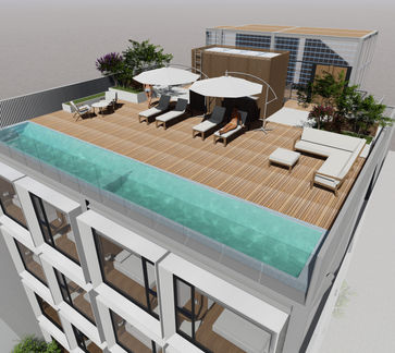由16個住宅艙構成的公寓社區,每個單元皆具備2房1廳與恆溫恆濕空調系統,並擁有3件式衛浴、廚具、地暖系統,社區公設附有1F大廳+輕食區、RF日光浴花園+戲水池、7個機械車位與16格機車位。